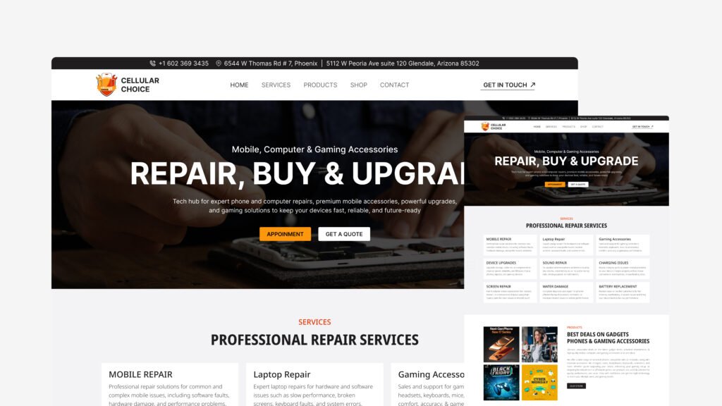 I built a clean digital presence for the shop, clearly showcasing its mobile products and services with a modern, trustworthy brand identity.